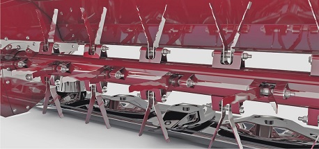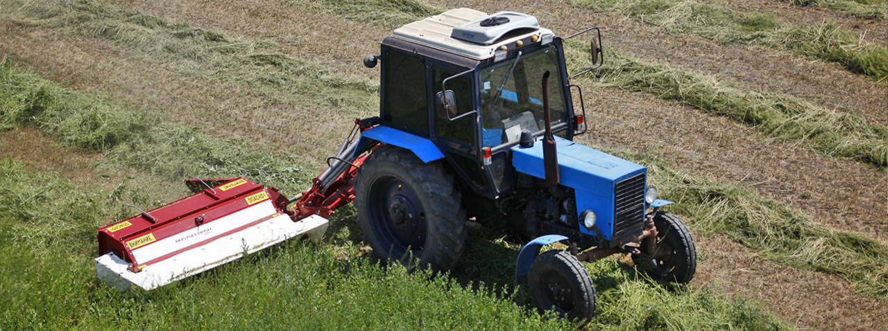 SapSun rotary mower with conditioner can obtain the exemplary quality of straw. It is designed for operation with high-yielder and laid grass. At high forward speeds of 9-15km/h, the machine performs clean mowing, without any problem fluffs and lays the mass into uniform swath. Multifunctional ability of the mower will gladden the most exacting customers: the machine can also be used for mowing grass and laying it into swath. Such ability appears when working with removed conditioner. The mower cares of the future crop. And for this purpose, the rotor speed gains 2850 rpm during operation, what not only provides clean cut, but also protects the upper soil layers and grass roots.